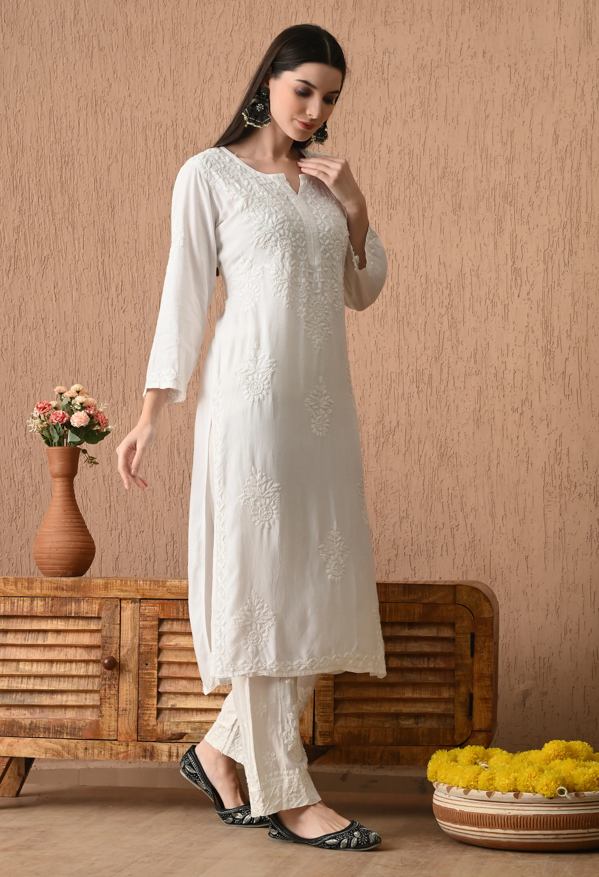 White Hasti Rayon Ombre Shade Chikankari Hand Embroidered Women's Straight Kurta