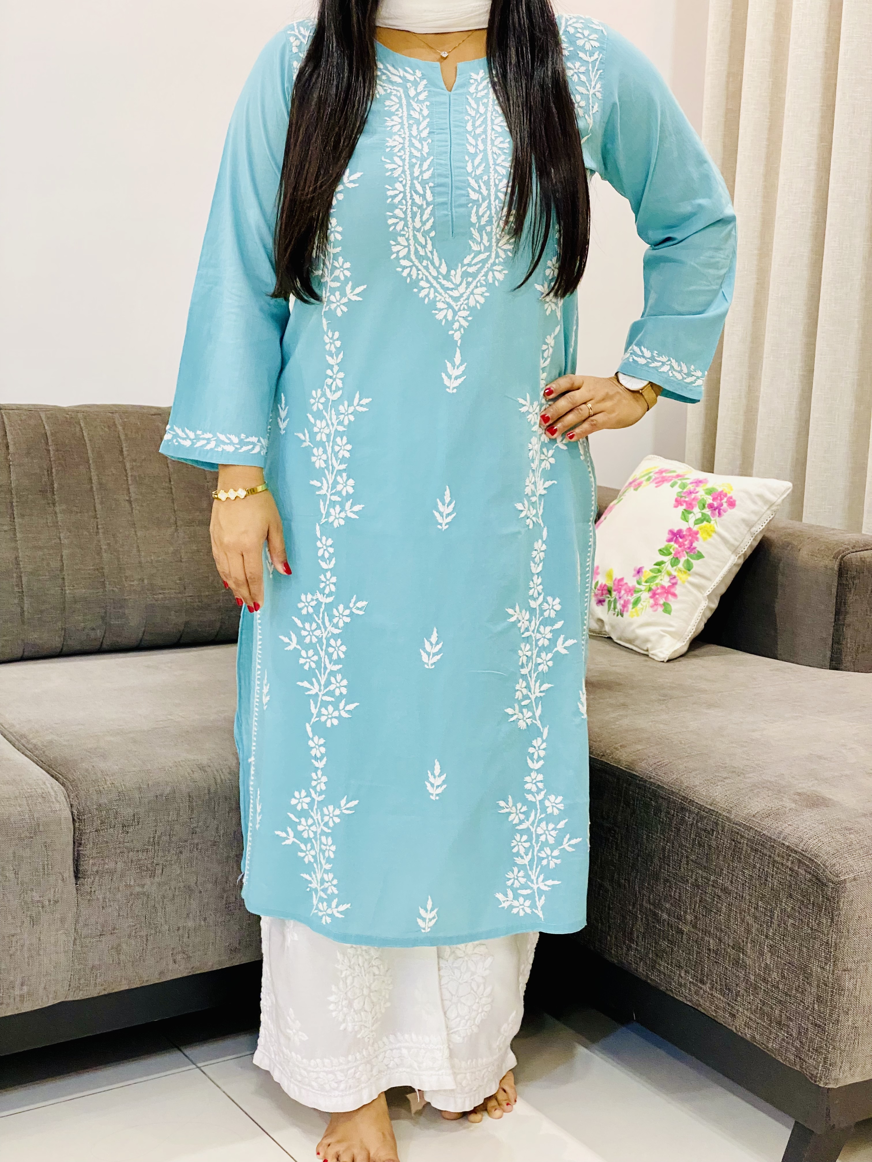 Aqua Ahana Cotton Chikankari Women's Solid Long Kurta