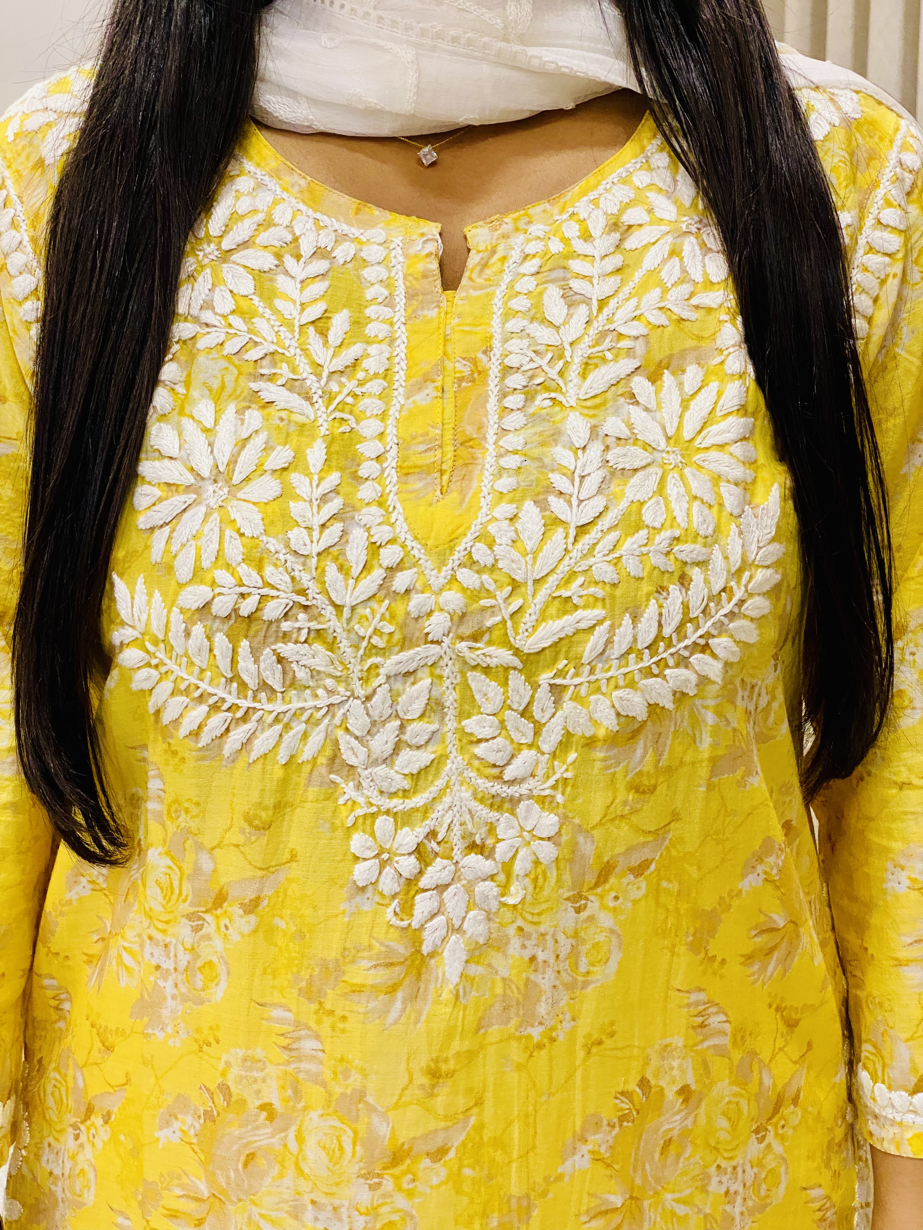 Yellow Vaani Mulmul Chikankari Hand Embroidered Floral Women's co-ord set