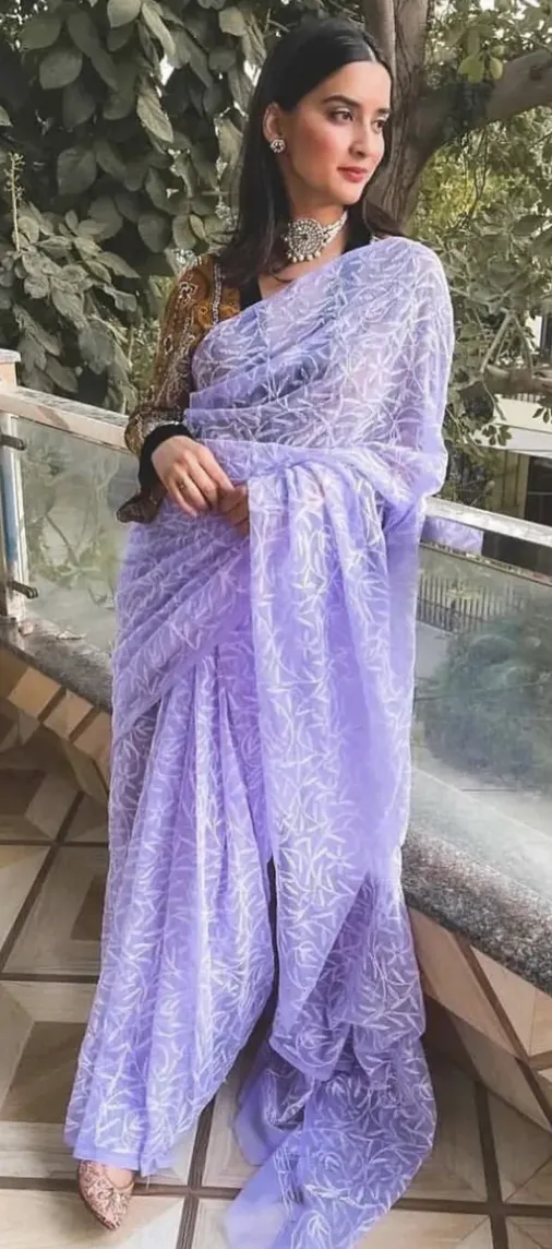 Lavender Hansa Tapchi Chikankari Hand Embroidered Women's Saree