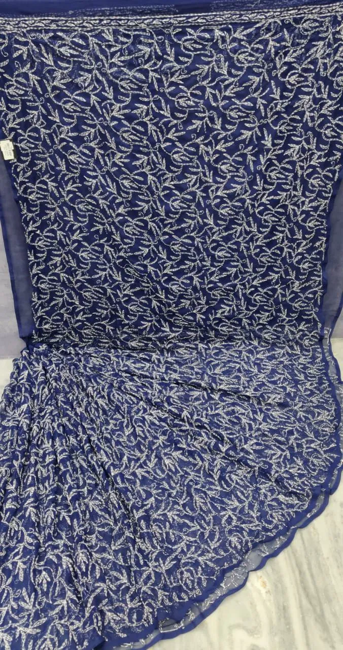Navy Blue Hansa Tapchi Chikankari Hand Embroidered Women's Saree