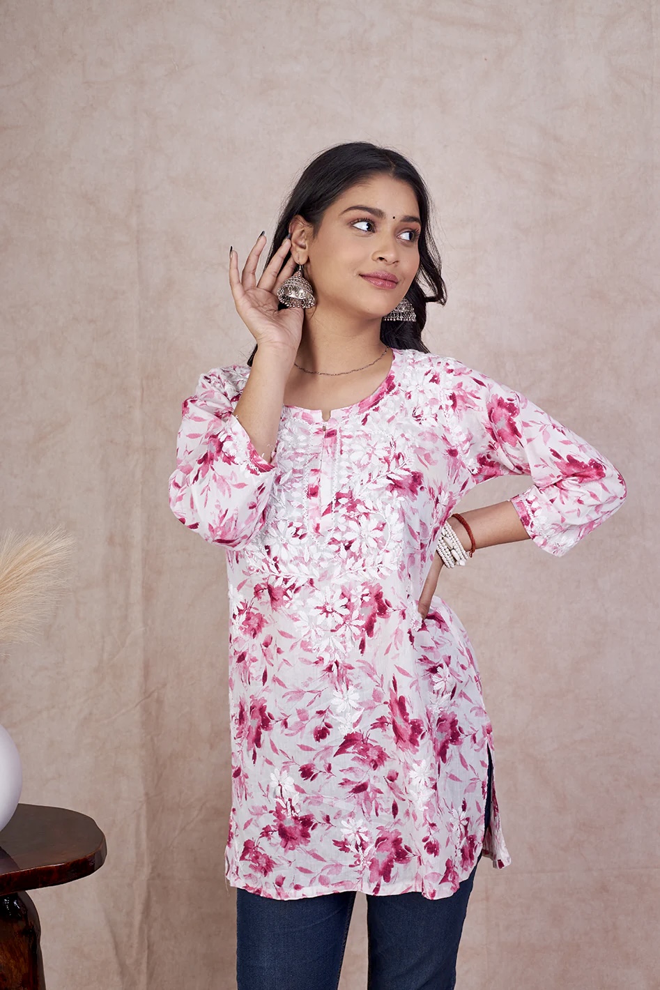 Pink Kannika Mulmul Printed Short kurti