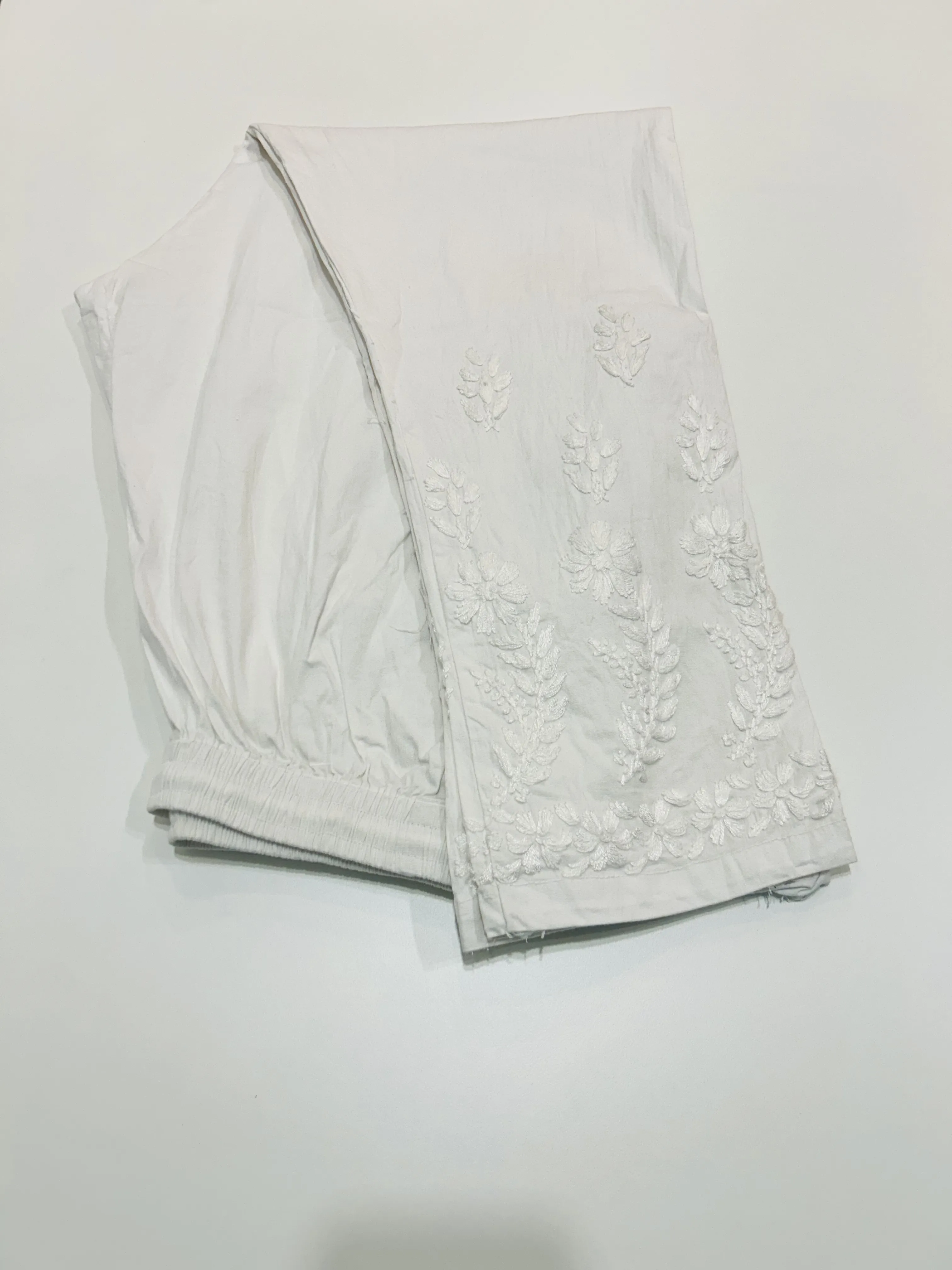 White Flower Lycra Cotton Chikankari Hand Embroidered Women's White Pant