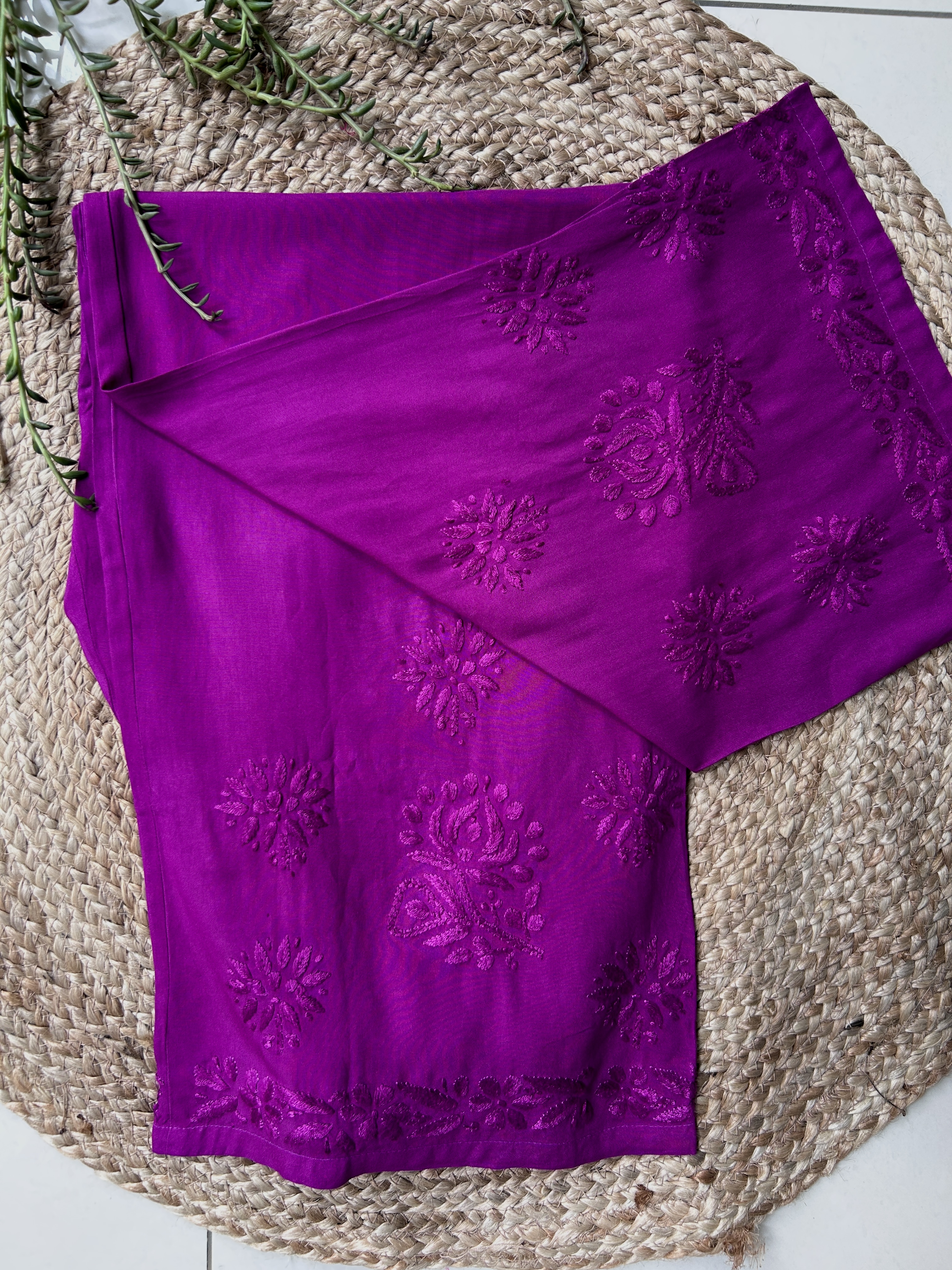 Purple Palak Premium Chikankari Hand Embroidered Kurta Palazzo Set