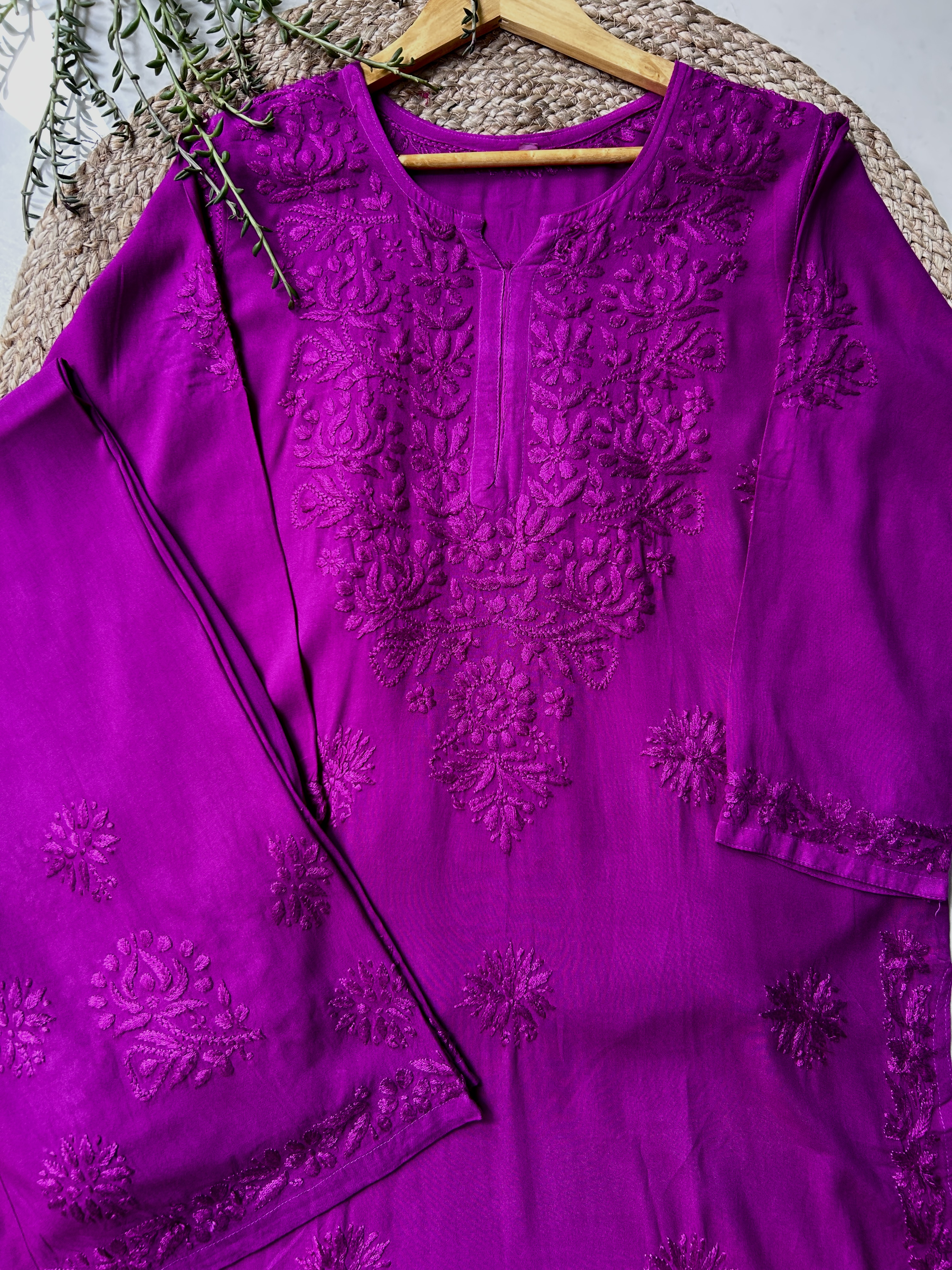 Mauve Sangriya Rayon Chikankari Handwork women kurta palazzo set