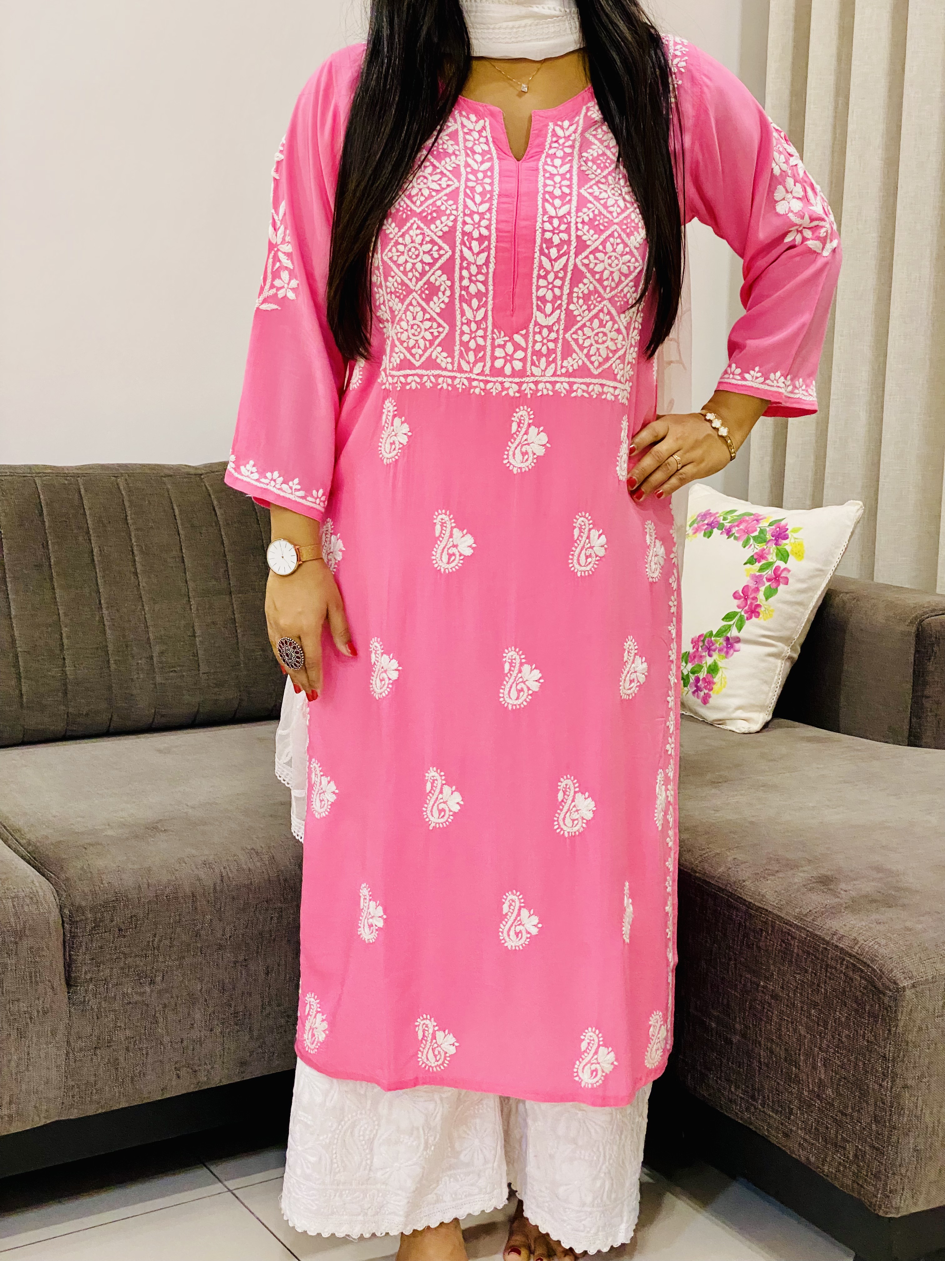 Pink Nora Premium Modal Chikankari Hand Embroidered Solid Women's Kurta