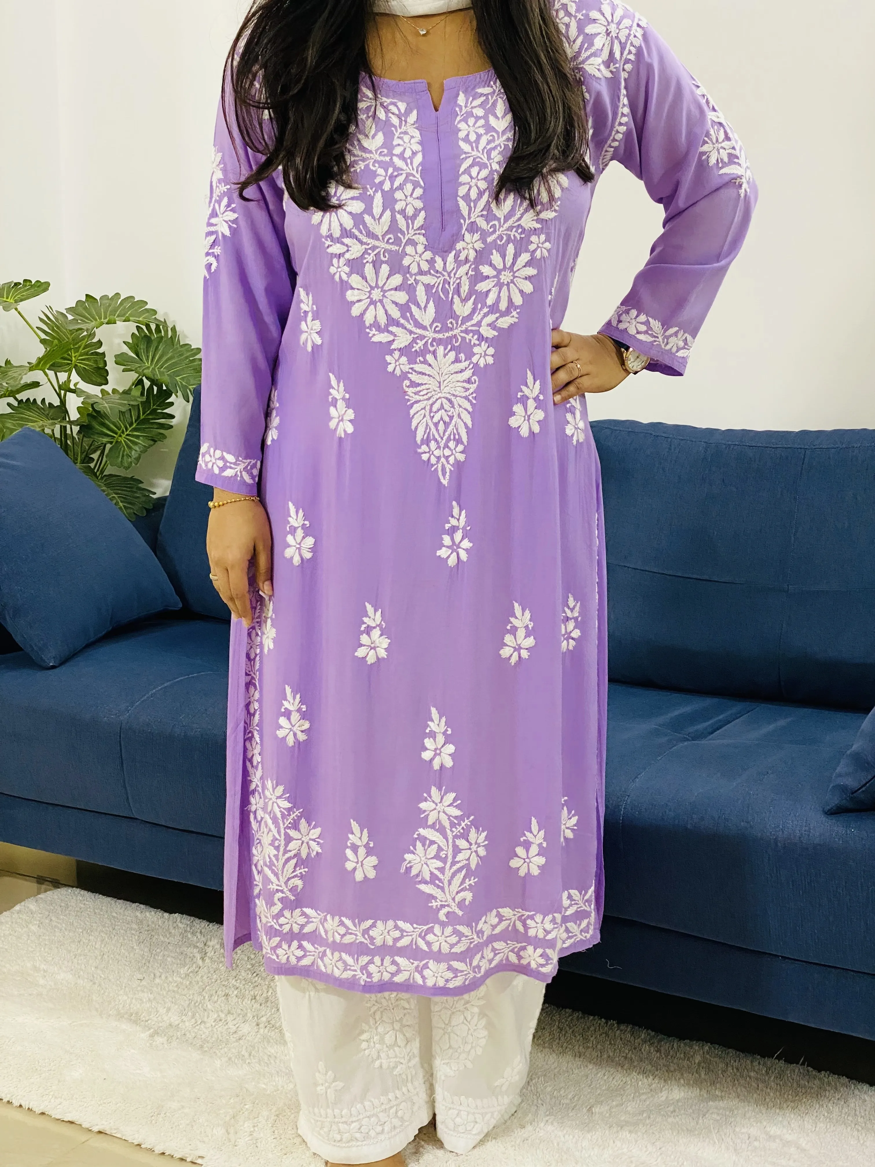 Lavender Nirmal Premium Modal Chikankari Solid Women's Long Kurta