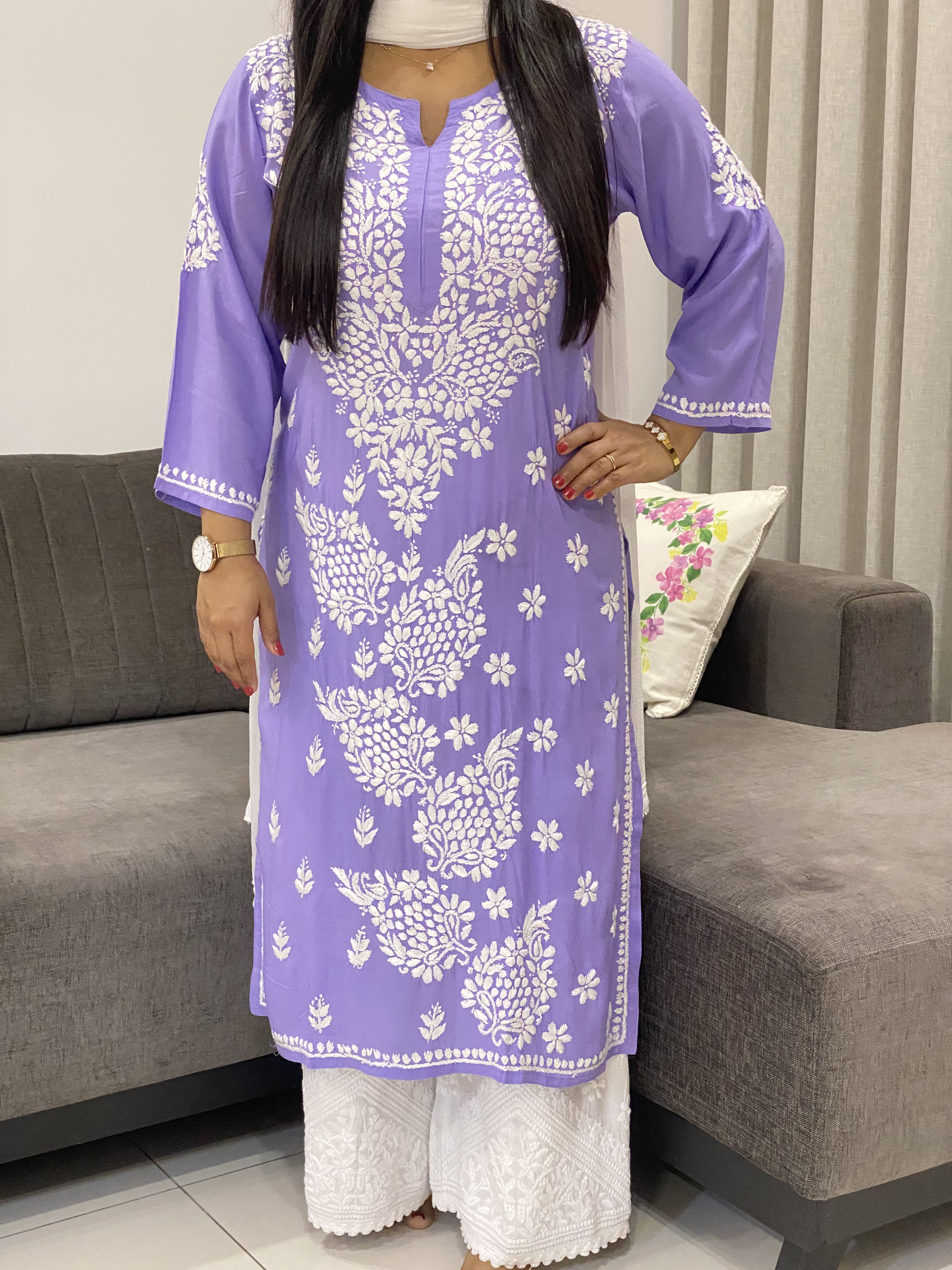 Lavender Esha Premium Modal Chikankari Hand Embroidered Solid Women's Kurta