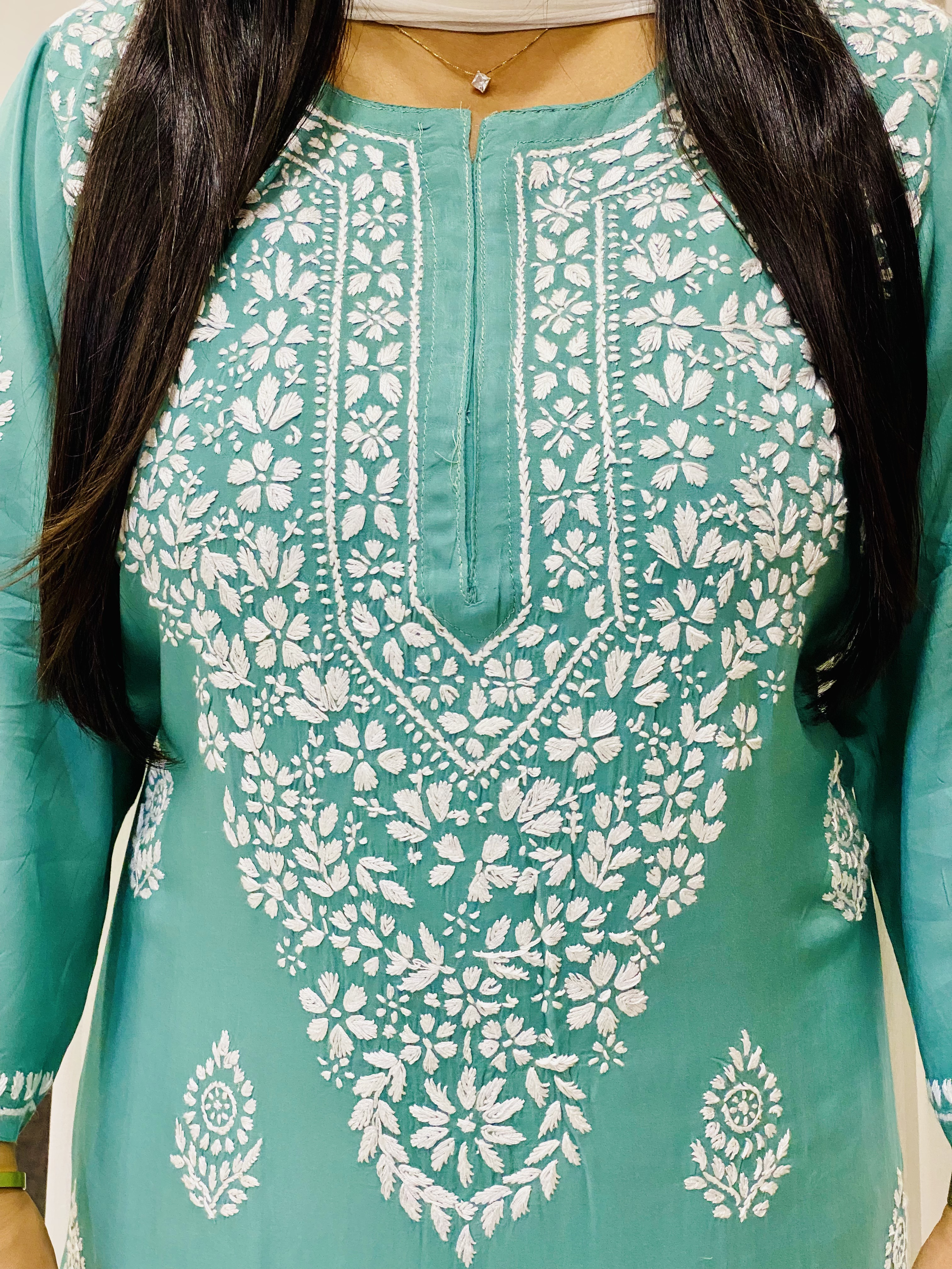 Army Green Niya Premium Modal Chikankari Hand Embroidered Solid Women's Long Kurta