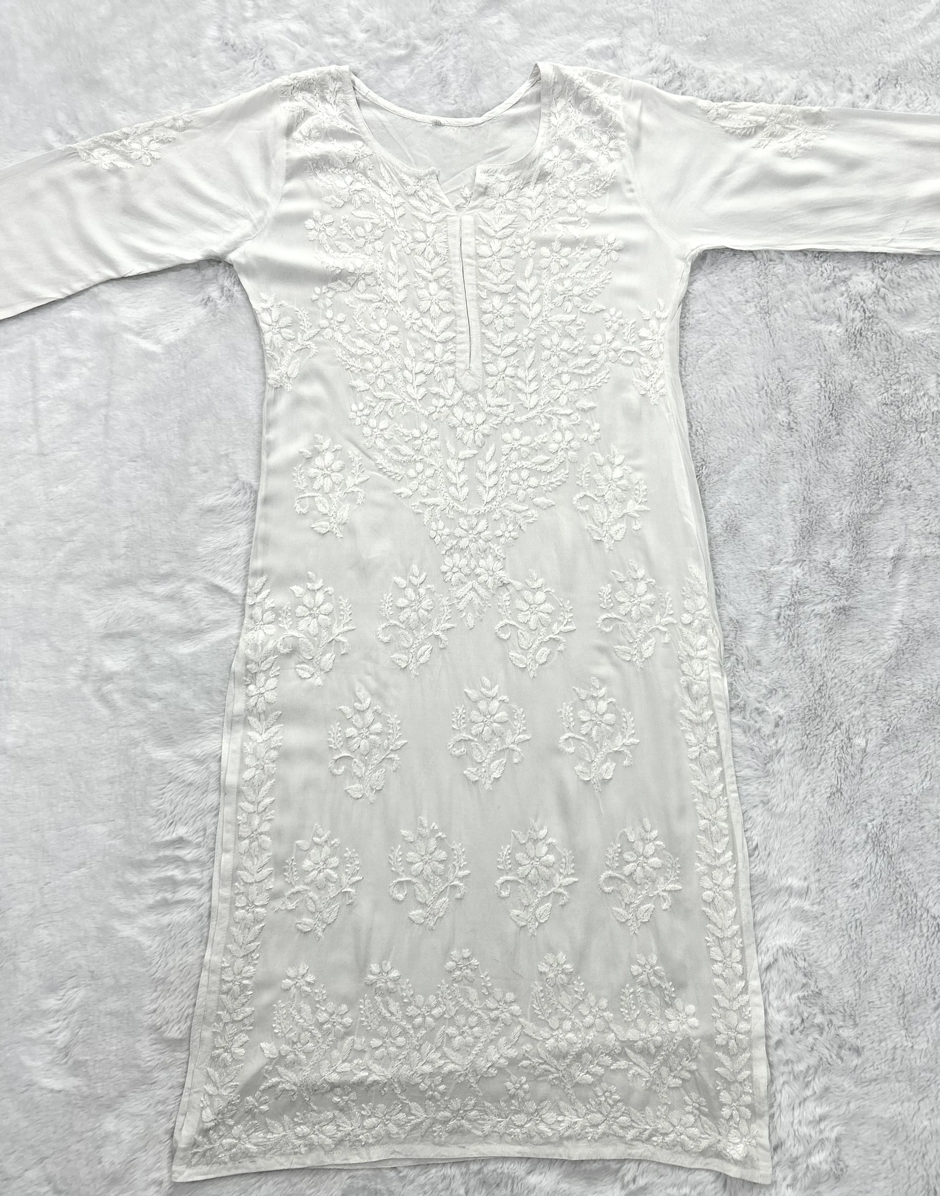White Alba Modal Chikankari Solid Women's Long Kurta