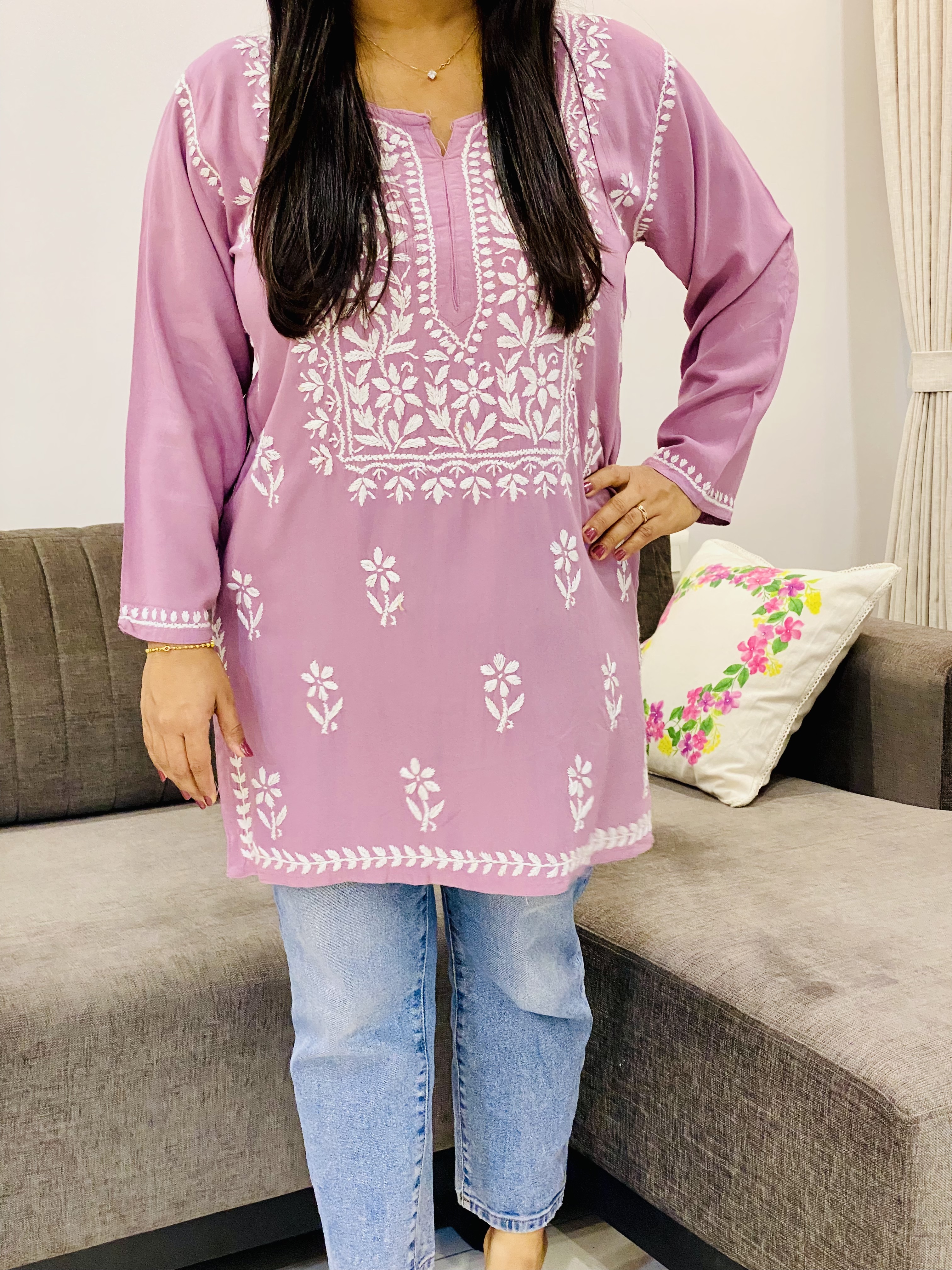 Morph isha Rayon Chikankari Handwork Solid Women's Short Kurta