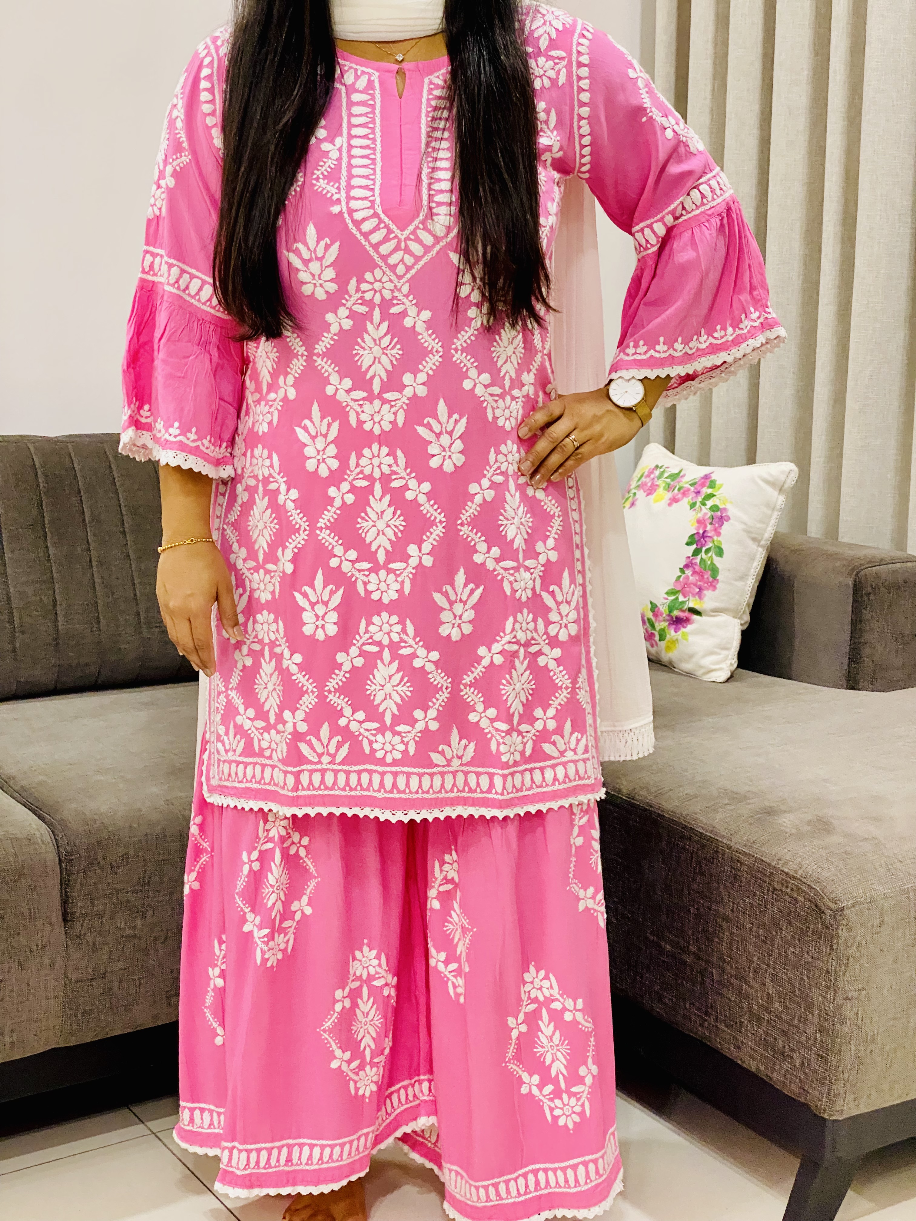 Pink Navya Rayon Chikankari Hand Embroidered Designer Women's Gharara Set