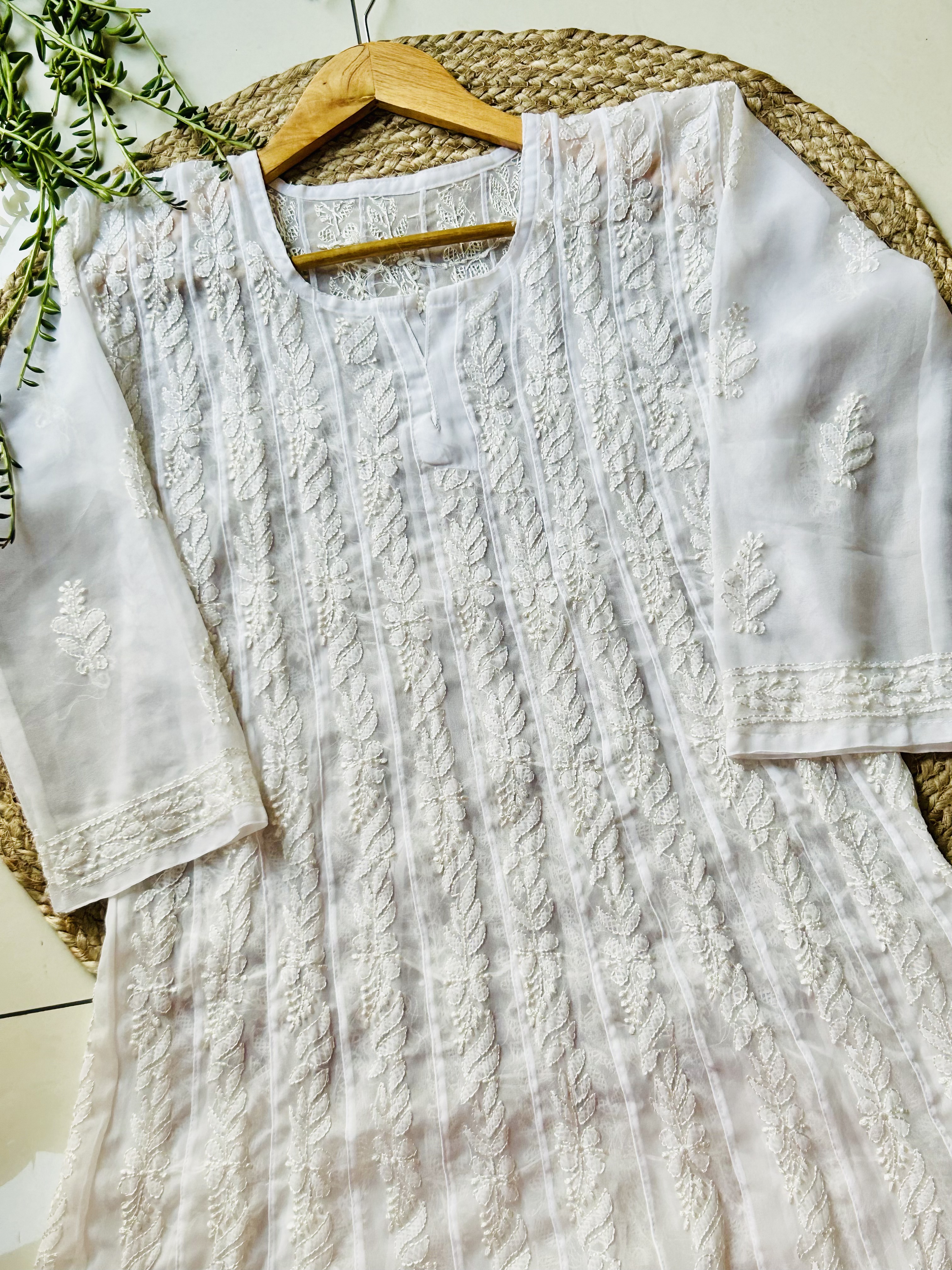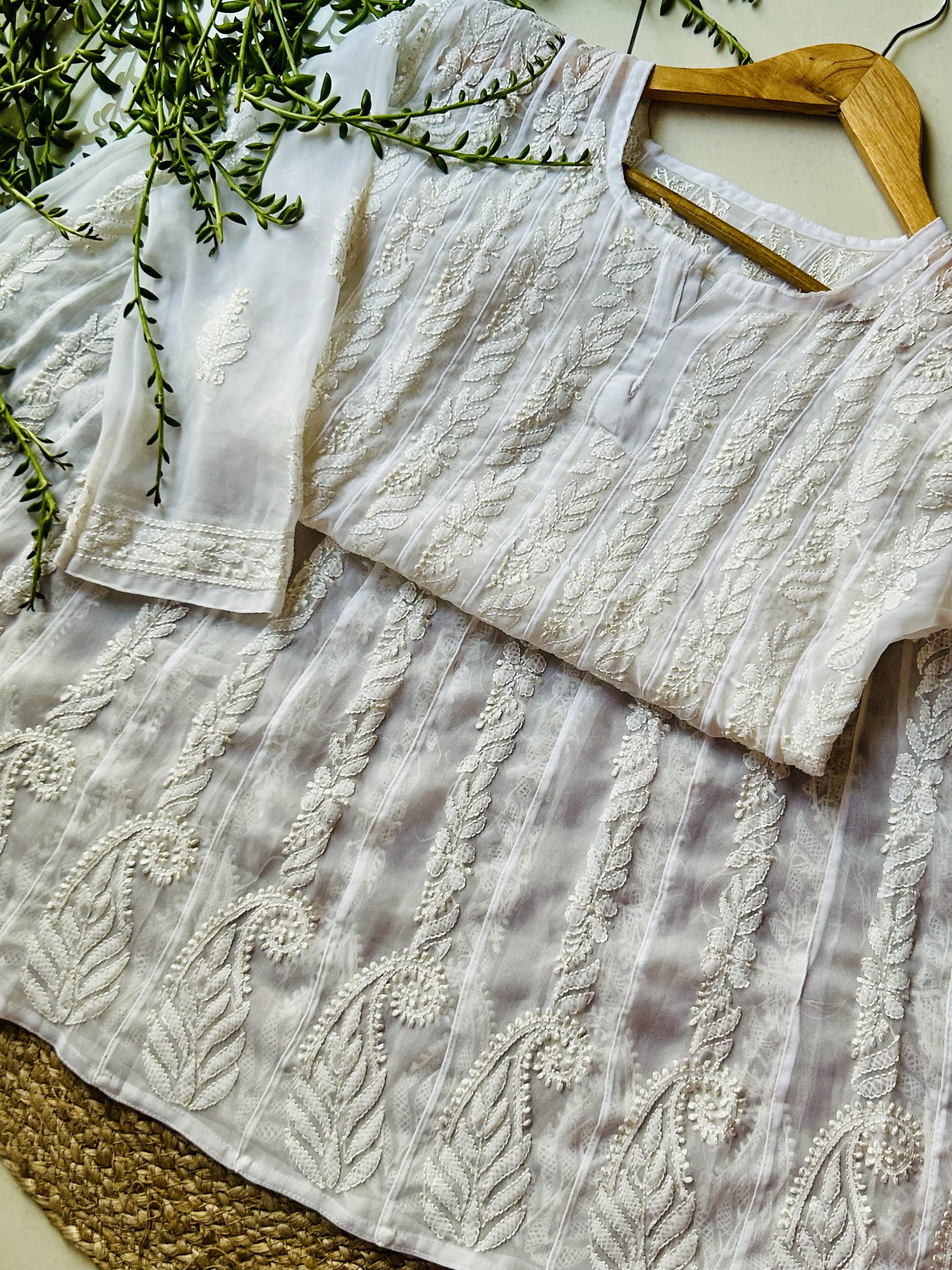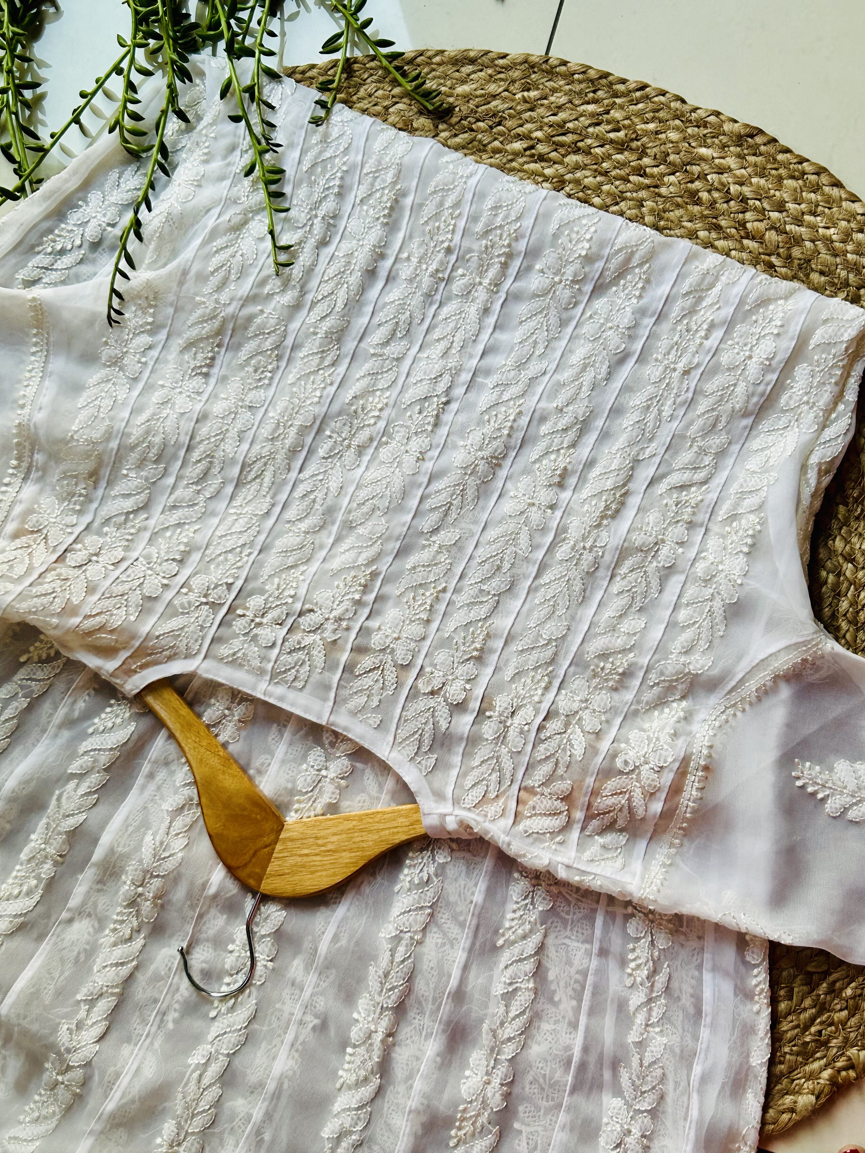 White Tara Resham Chikankari Hand Embroidered Women's Anarkali Long Kurta