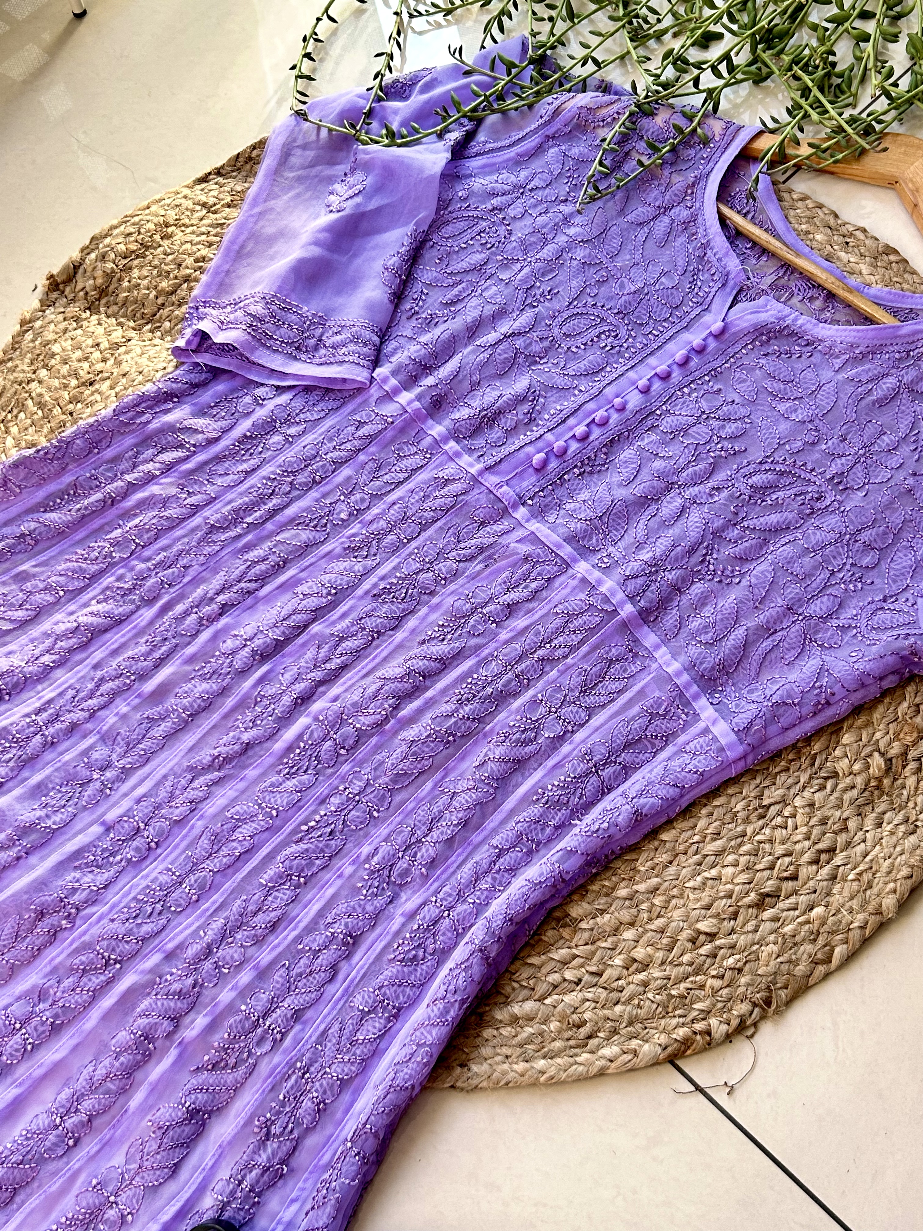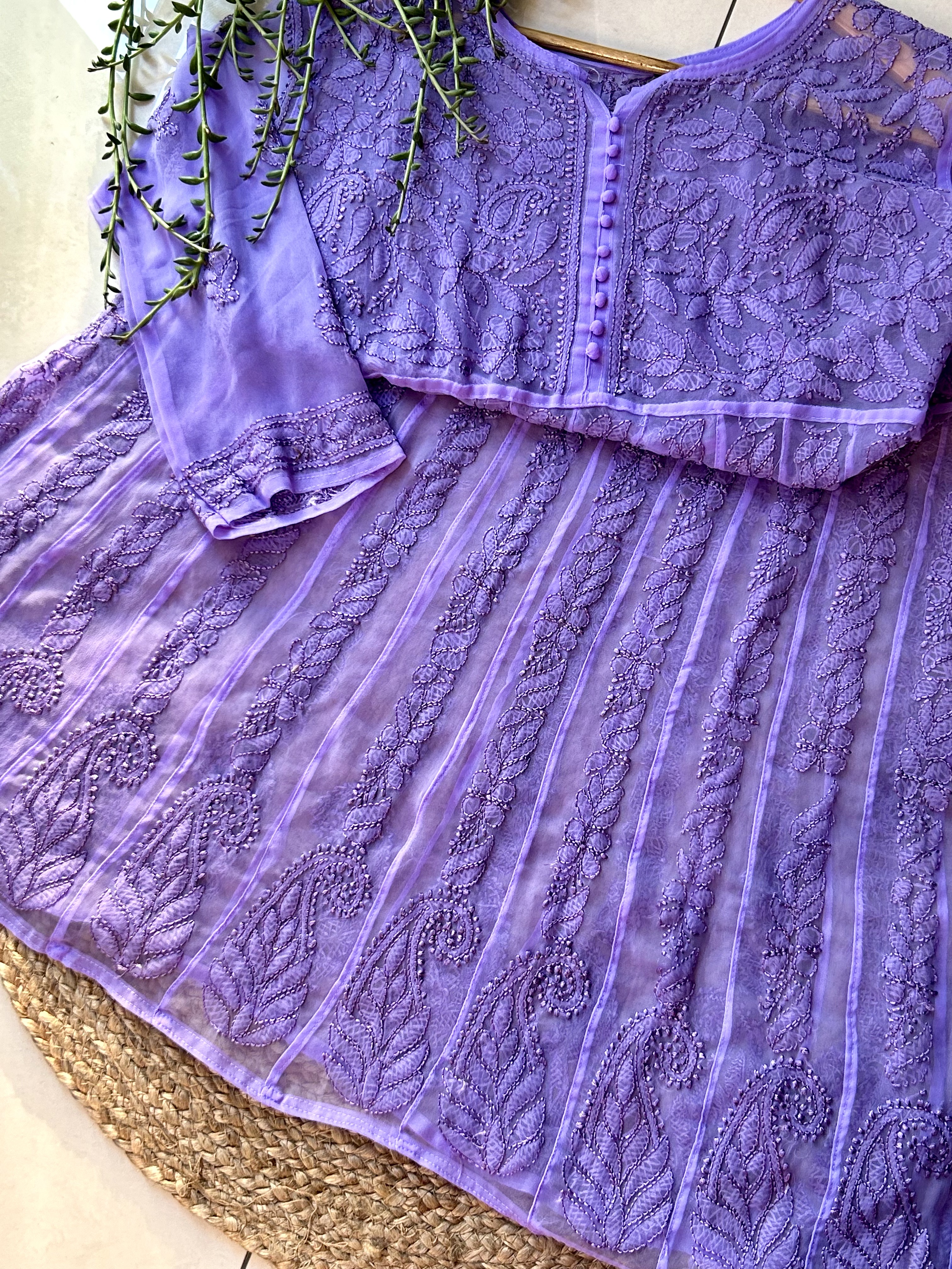 Lavender Tara Resham Chikankari Hand Embroidered Women's Yog Anarkali Kurta