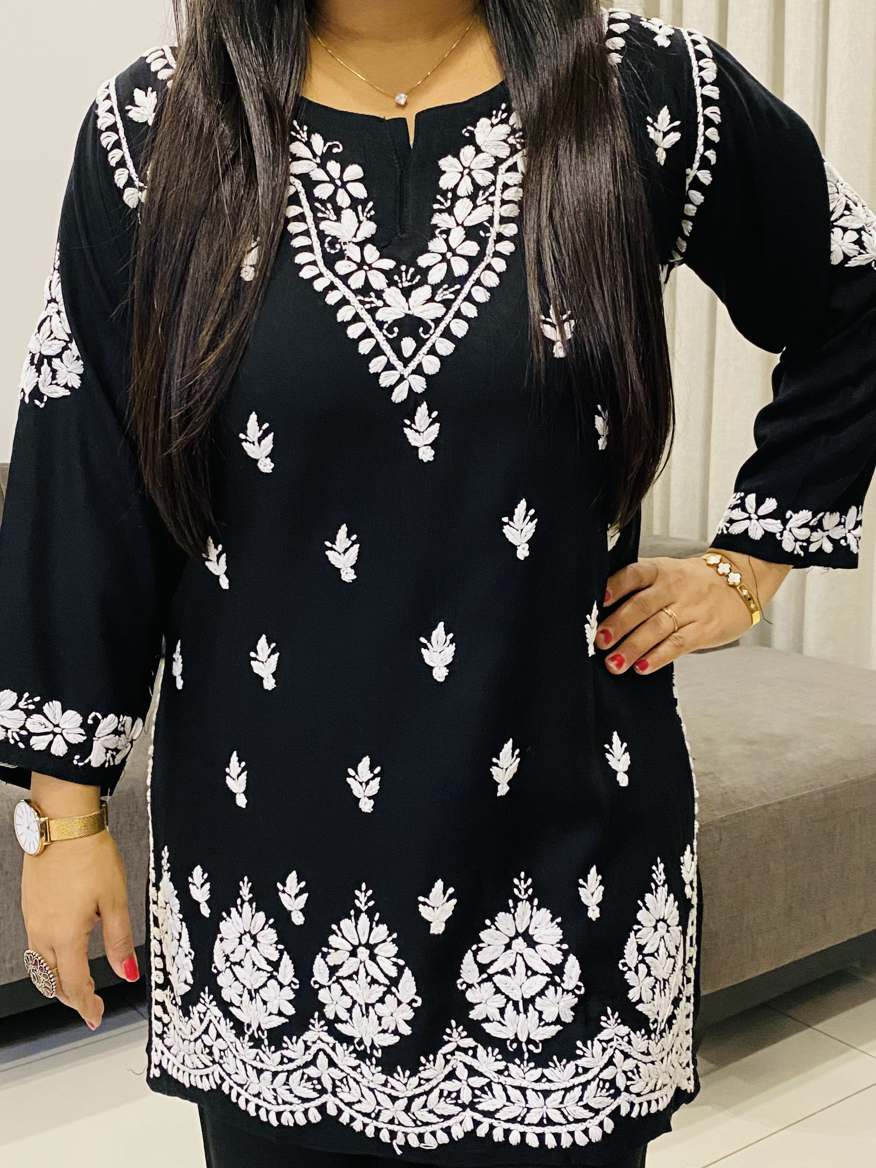 Black Trisha Rayon Chikankari Handwork Women's Co-ord Set