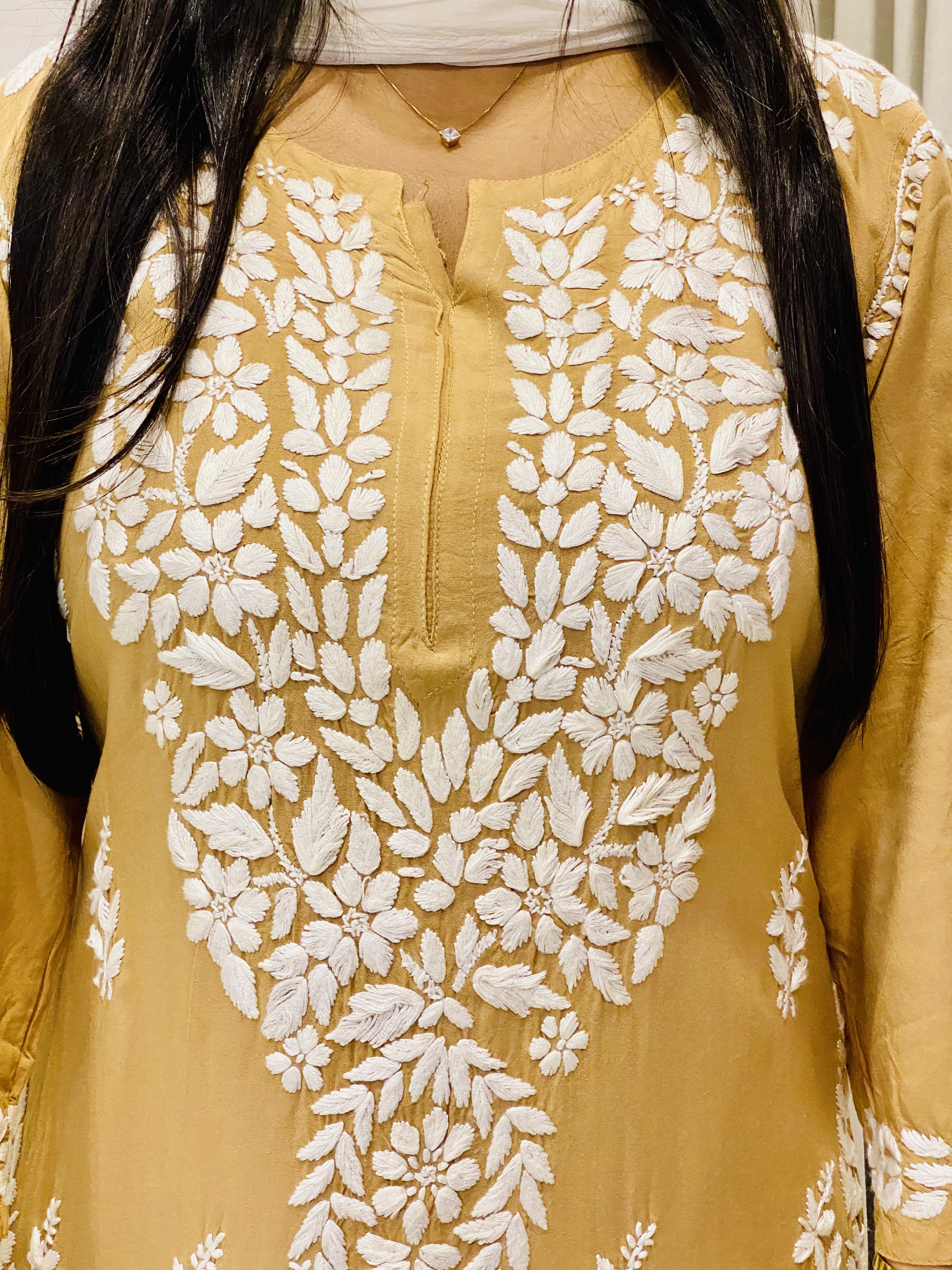 Fawn Falak 3D Chikankari Hand Embroidery Design Rayon Womens Kurta